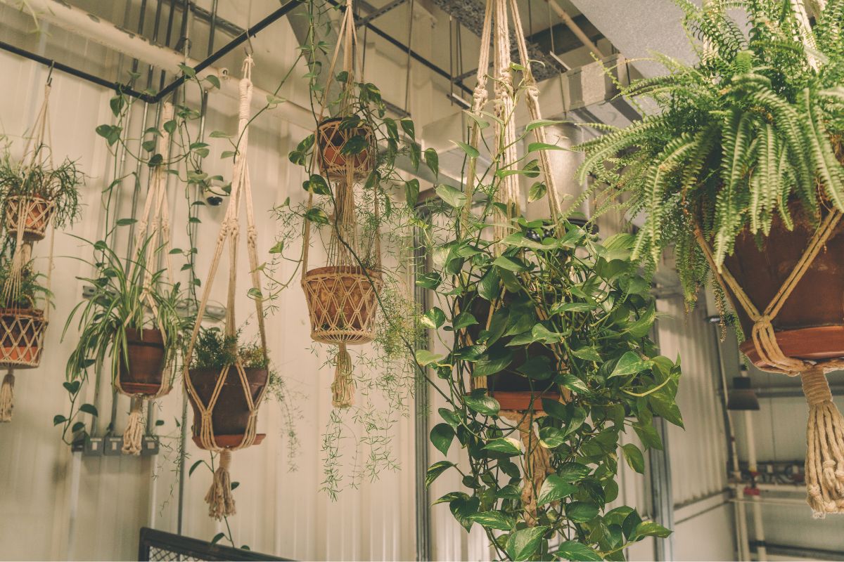 Lembre-se de verificar se o teto ou a parede são adequados para suportar o peso dos vasos suspensos e use ganchos e cordas resistentes para garantir a segurança das plantas.
