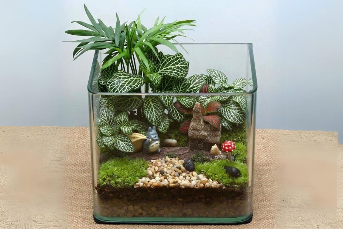 - Decorações: Após plantar, você pode adicionar elementos decorativos ao seu terrário. Lembre-se de que tudo que você colocar dentro do terrário precisará ser resistente à umidade e não tóxico para as plantas.