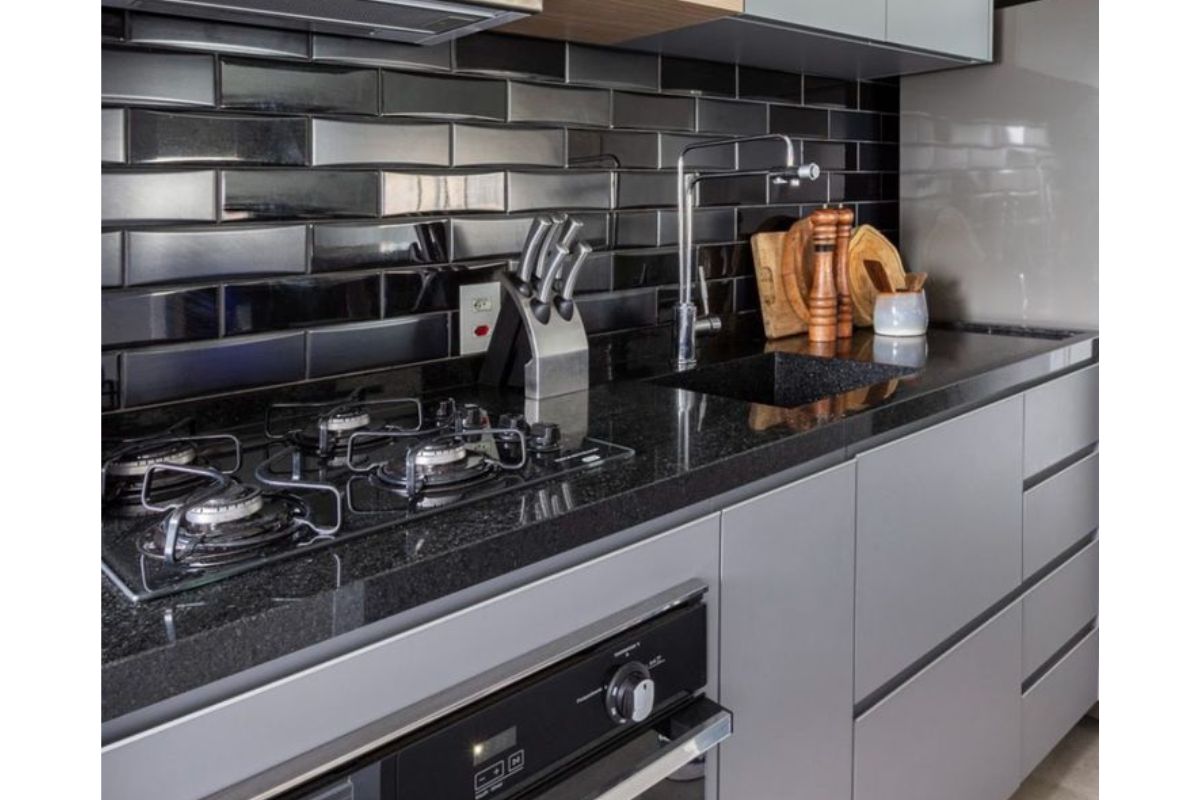 Com sua superfície escura e uniforme, o Granito Preto São Gabriel é ideal para cômodos com estilo moderno e sofisticado.