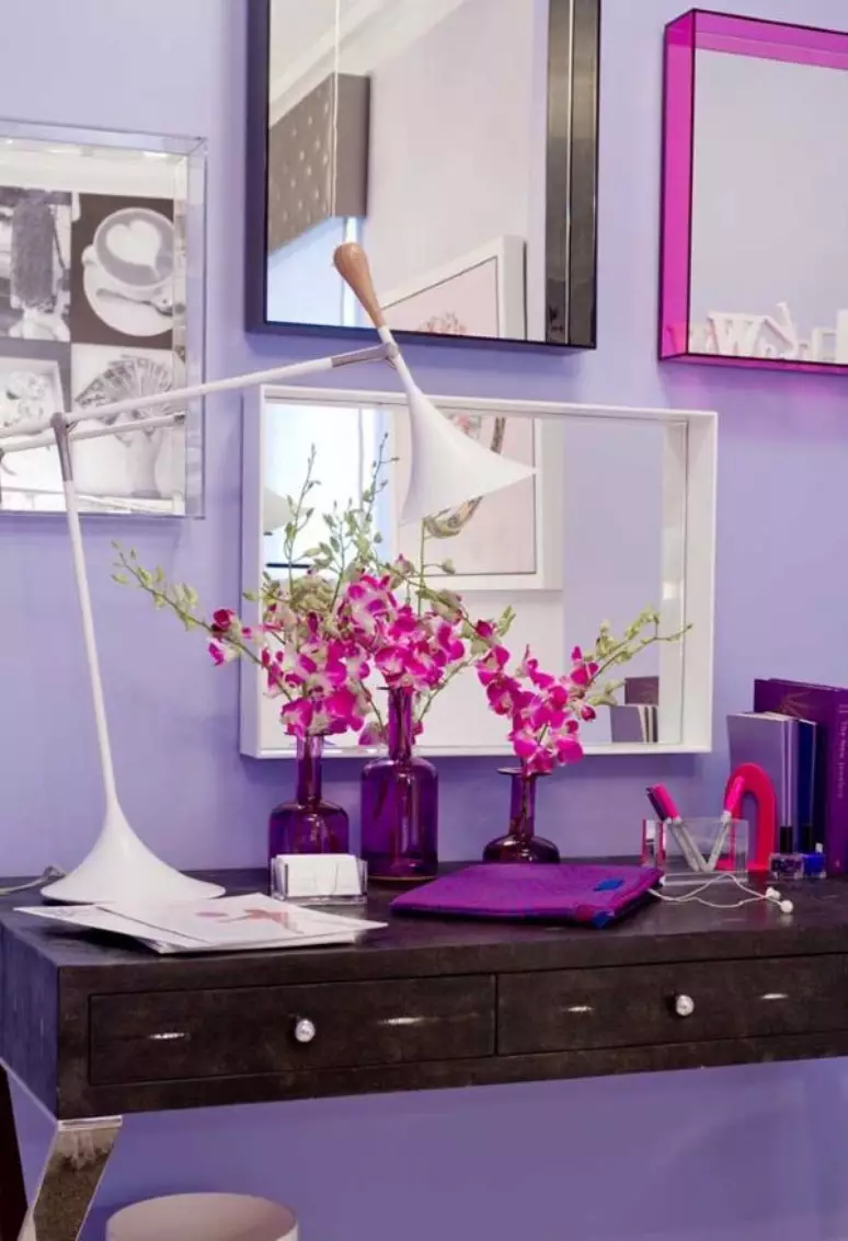 Também há a possibilidade de combinar o roxo com tons de azul, pois ambos são cores frias, resultando em uma decoração que acalma, que dá tranquilidade e serenidade.