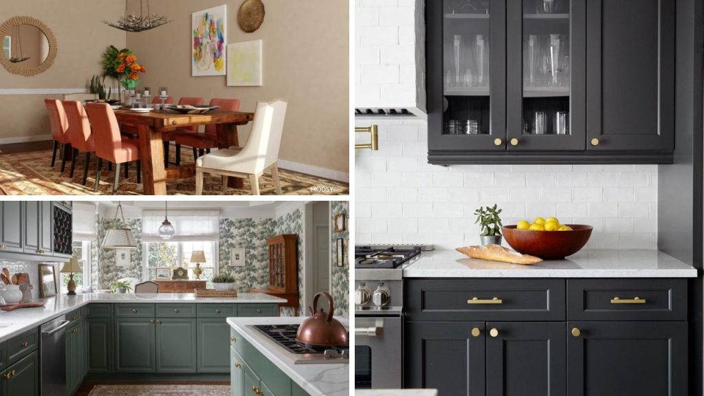 tons terrosos em móveis da sala de jantar