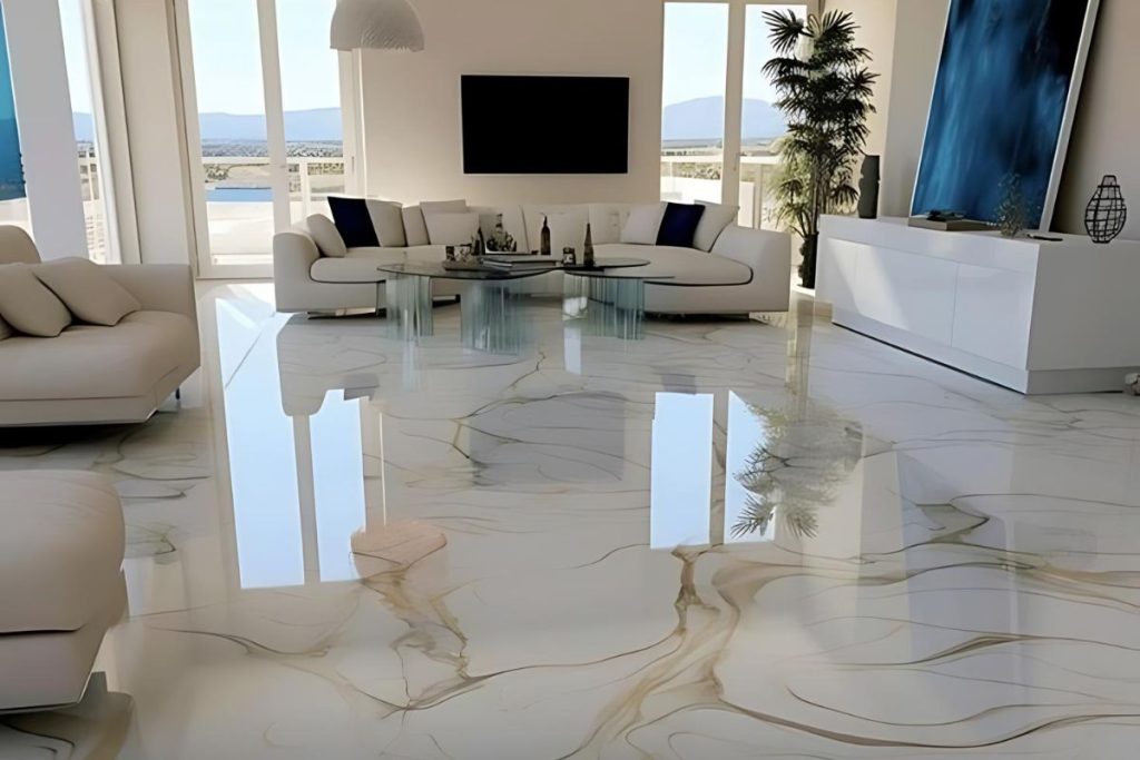 O porcelanato líquido, também conhecido como piso de resina epóxi, é um tipo de revestimento que cria uma superfície contínua e sem emendas.