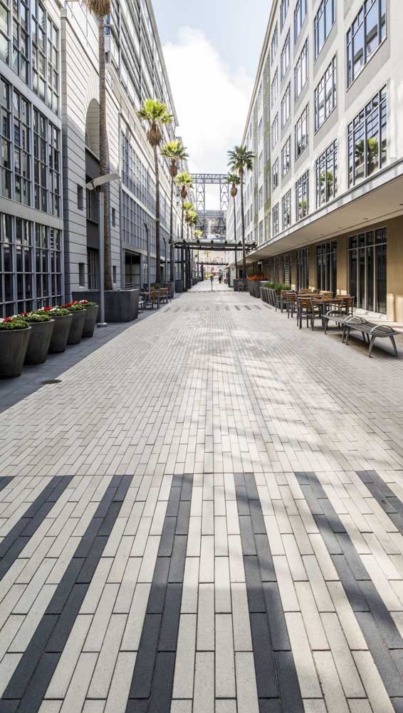 Recomenda-se o uso do piso intertravado em pavimentação de ruas, acessos internos, estacionamentos, calçadas, passeios e quintal.
