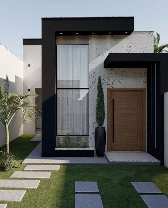 Use elementos como grandes janelas retangulares e paredes lisas sem muitos detalhes ornamentais. Isso dá um ar contemporâneo e ajuda a ampliar visualmente o espaço.